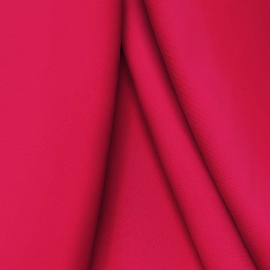 La tela base es Punto Sintético con Spandex - Support, de composición 95% poliéster y 5% elastano, con un gramaje de 237 gr/m2 y un ancho de 152 cm. El color liso impreso es Rojo Amaranto, con una combinación de tinta CYMK de 8 98 64 2. Este color simboliza pasión, amor y seguridad en uno mismo. Se combina perfectamente con colores neutrales, como blanco, negro o beige, y también con tonalidades de rosa o salmón.