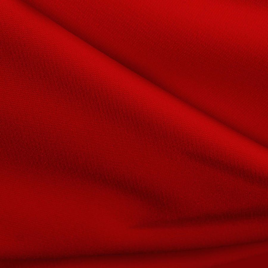 La tela base es Punto Sintético con Spandex - Support, compuesta por 95% poliéster y 5% elastano, con un gramaje de 237 gr/m2 y ancho de 152 cm. El color liso impreso es Rojo Pigmento, con un CMYK de 3 100 100 1. Este intenso color secundario se caracteriza por su aspecto visual opaco y su tacto suave y elástico. Combina a la perfección con otros colores intensos y vivos como el amarillo, el naranja o el rosa. La impresión digital textil es de una sola cara y ha sido realizada mediante la tecnología de sublimación en poliéster.