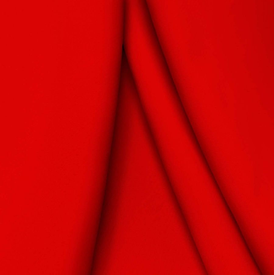 La tela utilizada es el Punto Sintético con Spandex - Support en color liso impreso en Rojo Caramelo de Manzana, con una composición de 95% poliéster y 5% elastano, un peso de 237 gr/m2 y un ancho de 152cm. El CMYK refleja el bajo uso de la tinta cian, y la saturación completa de magenta y amarillo, sin tinta negra en la mezcla. El resultado es un color intenso y vibrante con un matiz cálido y dulce. Este color se combina particularmente bien con tonos verdes y beige, así como con colores fríos como morado o azul. La tela está impresa con este color liso en una sola cara por impresión digital textil.