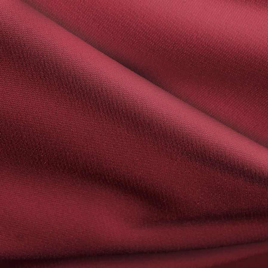 La tela base de este tejido es el Punto Sintético con Spandex - Support, compuesta por un 95% de POLIÉSTER y un 5% de ELASTANO, con un gramaje de 237 gr/m2 y una anchura de 152 cm. Su color liso impreso es un rojo borgoña, conseguido mediante la tecnología de sublimación con un CMYK de 32 99 75 45. Este color es de tonalidad oscura y profunda, con matices violetas y una apariencia muy elegante. Combina bien con otros colores oscuros como el negro, el azul marino o el verde forestal.