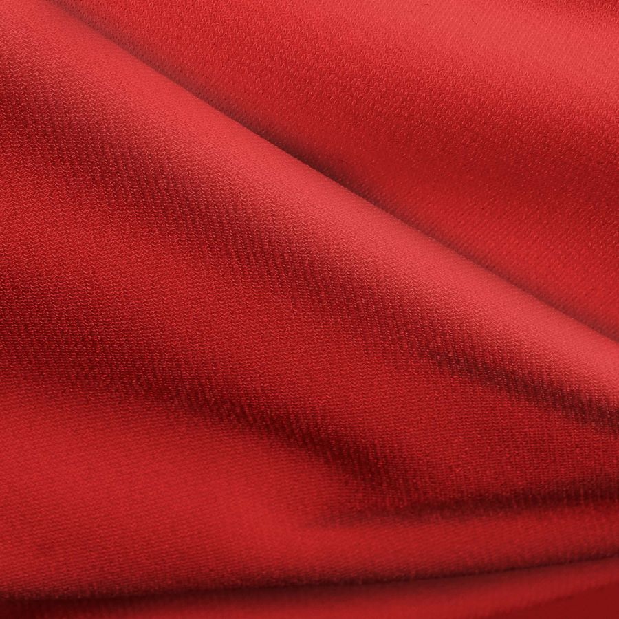 La tela base es el Punto Sintético con Spandex - Support, con una composición de 95% poliéster y 5% elastano, un gramaje de 237 gr/m2 y un ancho de 152 cm. El color liso impreso tiene un tono rojo sangre, con una mezcla de tintas en CMYK de 18 100 100 8. Este color simboliza la pasión, el deseo y la vitalidad, y se combina bien con tonos oscuros como el negro y el gris, así como con tonalidades neutrales como el blanco y el beige. Es importante destacar que la tela base está impresa con el color liso a una sola cara por impresión digital textil, lo que significa que no es un tejido tintado, sino impreso por una sola cara.