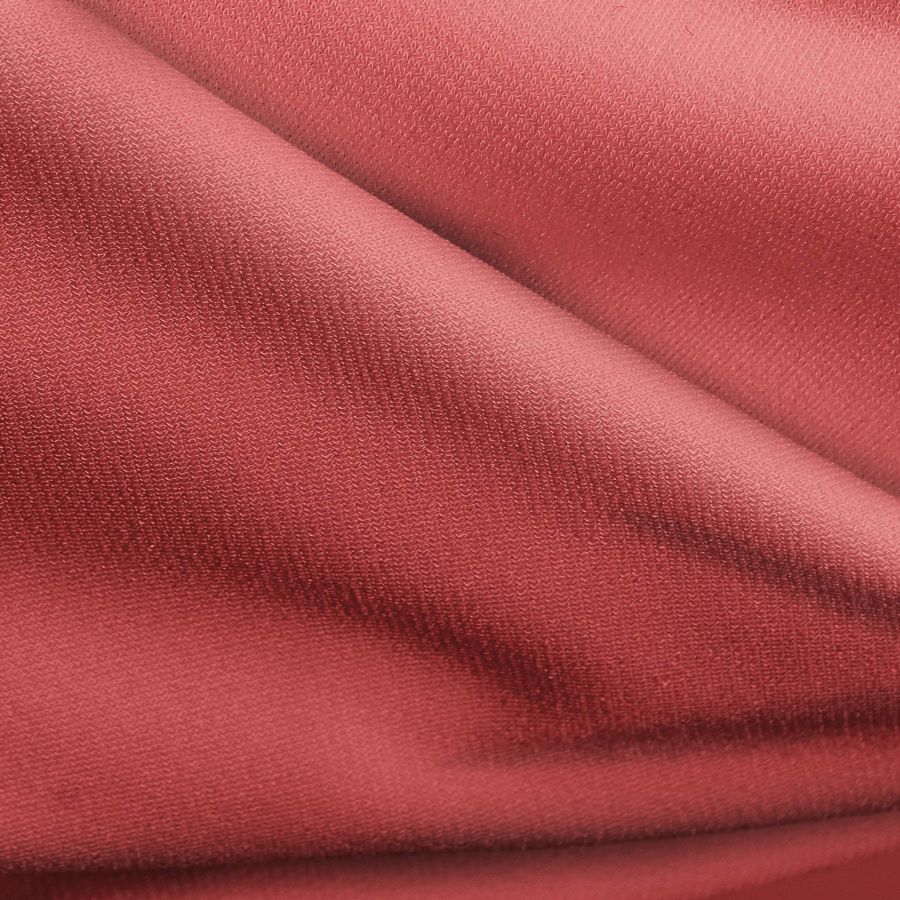 La tela base de este tejido es el Punto Sintético con Spandex - Support. El color liso impreso es rojo granate claro con una combinación de tintas que comprenden una proporción de 18 de cian, 80 de magenta, 63 de amarillo y 6 de negro (CMYK: 18 80 63 6). Este tono granate claro presenta un matiz elegante y sofisticado que evoca un aire de misterio y profundidad. En cuanto a su combinatoria, este color secundario va bien con tonos neutros como el blanco, el negro y el gris, así como con tonos cálidos como dorados y cobres.