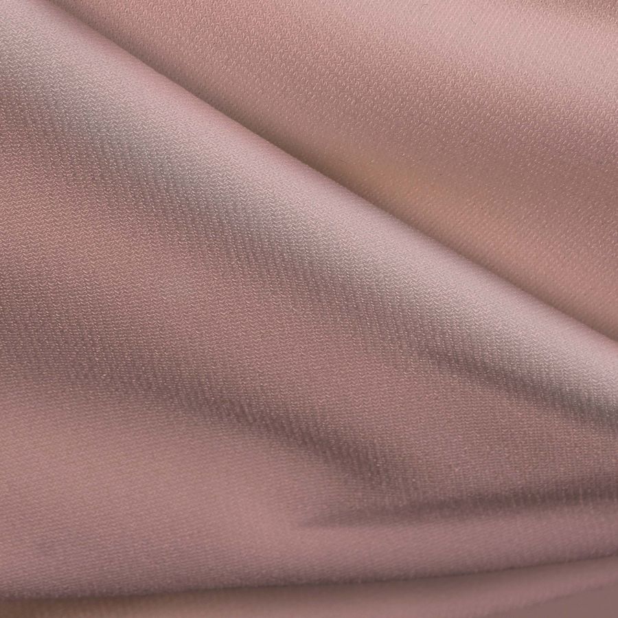La tela base, Punto Sintético con Spandex - Support, tiene un gramaje de 237 gr/m2 y está compuesta en un 95% de poliéster y un 5% de elastano. Es una tela de punto con una anchura de 152 cm, y su color liso impreso es de tonalidad rojo pálido con un CMYK que indica 0% cyan, 34% magenta, 23% yellow y 0% black. Este color se caracteriza por su delicadeza y sutileza, lo que aporta a la tela una estética elegante y sofisticada. El rojo pálido combina perfectamente con tonos rosados, beige y grises claros.