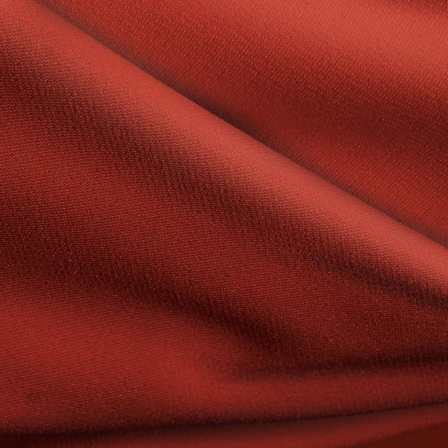 La tela base, Punto Sintético con Spandex - Support, consta de un 95% de poliéster y un 5% de elastano, con un gramaje de 237 gr/m2 y una anchura de 152 cm. Su color liso impreso, Naranja Ladrillo Refractario, se compone de una mezcla de tinta cian, magenta, amarilla y negra, con una proporción de 28, 99, 100 y 34 respectivamente. Este color es una tonalidad intensa y vibrante, que brilla con gran fuerza y energía.