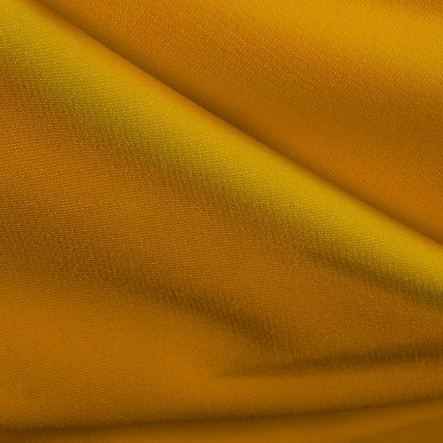 Esta tela es Punto Sintético con Spandex - Support, en un color liso impreso en tonos de naranja albaricoque claro, con un perfil de color CMYK 0 48 93 0. El color secundario se caracteriza por su suave y cálido brillo y es muy versátil en combinación con otros colores, incluyendo verdes y azules. La tela está impresa con el color liso a una sola cara con impresión digital textil. La tela es suave al tacto, visualmente opaca y elástica. Entre los atributos de la tela base se encuentran su gramaje de 237 gr/m2, una composición de 95% poliéster y 5% elastano y un ancho de 152 cm. Esta tela es ampliamente utilizada en la confección de prendas de lencería, tops para hombre y mujer, prendas de punto y accesorios, así como en la fabricación de prendas deportivas para niños, hombres y mujeres. Por otro lado, es importante tener en cuenta que esta tela requiere de cuidados especiales de lavado, que incluyen no usar blanqueador, lavar en temperaturas máximas de 30ºC, admite limpieza en seco salvo tricloroetileno, planchar a temperatura fría por el revés de la tela, y no secar en secadora. La tela se fabrica mediante sublimación (poliéster), una tecnología de impresión que permite una mayor fidelidad de los colores y la producción de impresiones de gran calidad y durabilidad en tejidos de punto y otros materiales.