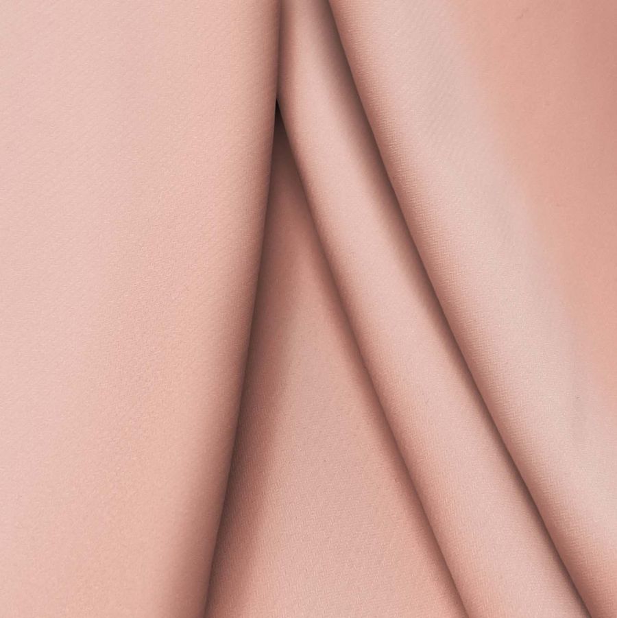 La tela base de este tejido es el Punto Sintético con Spandex - Support, compuesta por un 95% de poliéster y un 5% de elastano, con un gramaje de 237 gr/m2 y un ancho de 152 cm. El color liso impreso es un hermoso rosa con tonalidades de Donut Rosa, con una tinta cyan de 0, una magenta de 43, una yellow de 33 y una black de 0, lo que se traduce en una representación de color en el espacio de color CMYK de 0 43 33 0.