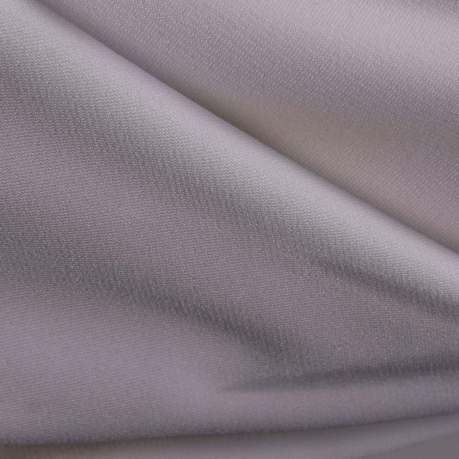 La tela está impresa con el color liso a una sola cara por impresión digital textil, lo que significa que una sola cara de la tela tiene el diseño impreso. La otra cara es de color blanco. La textura de la tela es suave al tacto, opaca visualmente y elástica, lo que hace que sea perfecta para ropa ajustada y lencería.