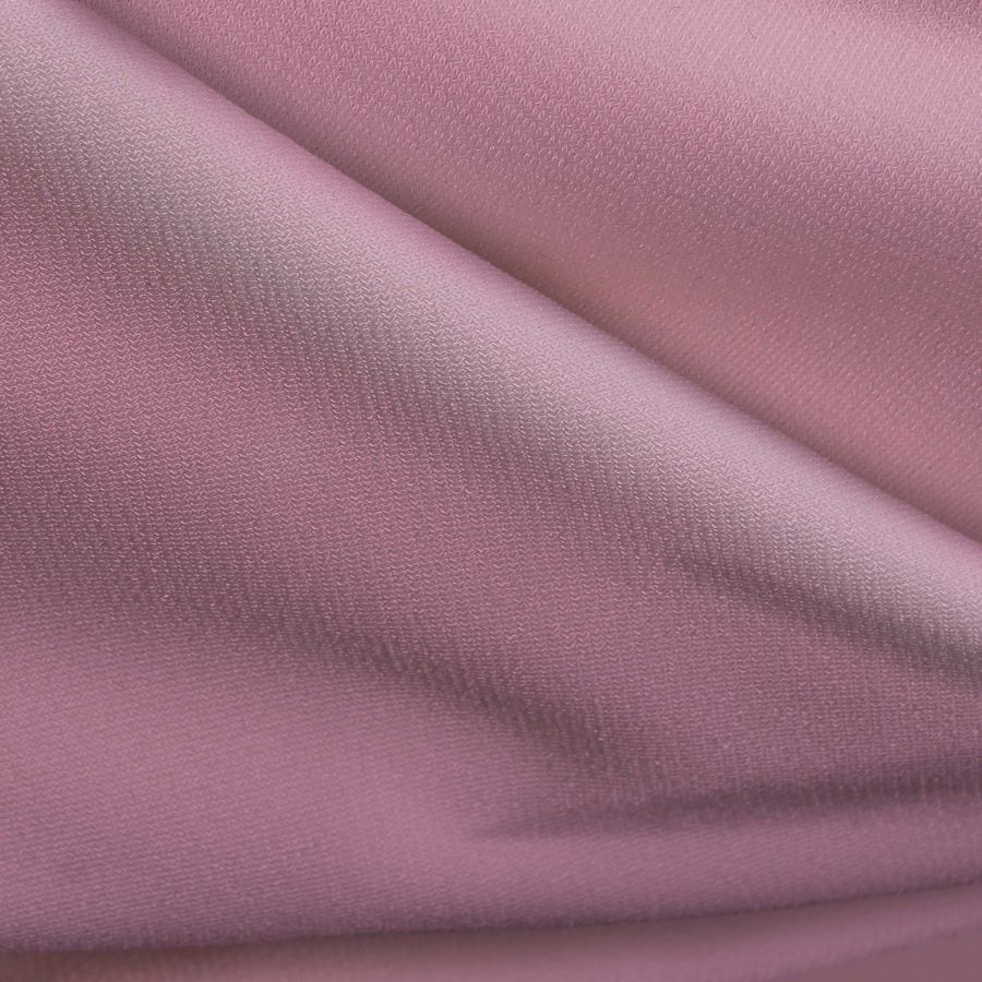 La tela base es el Punto Sintético con Spandex - Support, una tela de punto compuesta por 95% poliéster y 5% elastano con un gramaje de 237 gr/m2 y un ancho de 152 cm. El color liso impreso es un rosa Nadeshiko con un CMYK de 0 43 6 0. Este color secundario se caracteriza por ser un rosa intenso y vibrante que combina perfectamente con tonos neutros como el blanco, gris y negro; pero también puede ser usado junto con tonalidades más atrevidas, como el turquesa o el dorado.