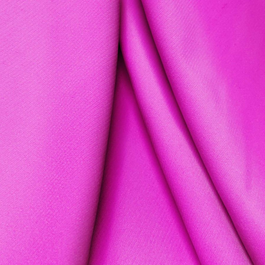 La tela base es el Punto Sintético con Spandex - Support, compuesta por un 95% de poliéster y un 5% de elastano, con un gramaje de 237 gr/m2 y un ancho de 152 cm. El color liso impreso es el Rosa Deslumbrante Razzle, con una tinta cyan del 23 y una tinta magenta del 79, sin tintas yellow ni black, y un CMYK de 23 79 0 0. Este color es símbolo de la dulzura, el amor y la seducción, evocando una sensación de inocencia y romanticismo. Además, combina bien con tonos claros y cálidos como el beige, el melocotón y el dorado y también con tonos oscuros como el negro y el marrón.