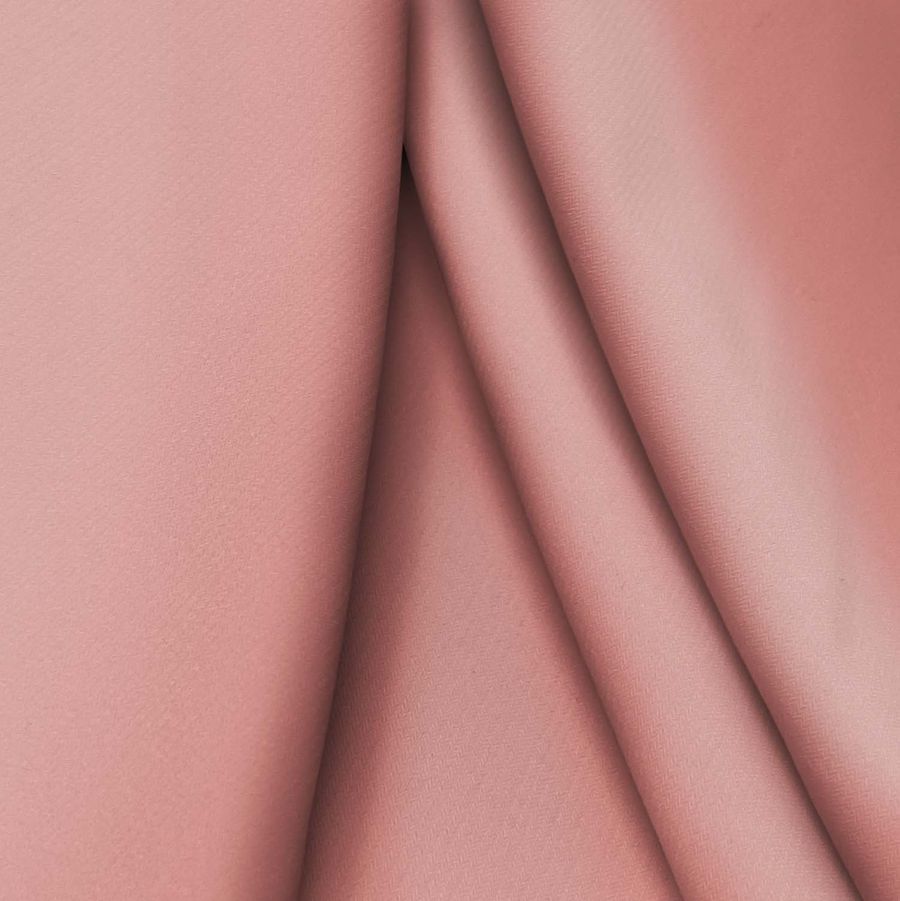 La tela base es el Punto Sintético con Spandex - Support de 237 gr/m2 y 152 cm de ancho, compuesta por 95% poliéster y 5% elastano. El color liso impreso es un rosa llamado New York, con un CMYK de 13 57 42 2. Este color secundario simboliza la dulzura del romance y la emoción de la gran ciudad. Se combina perfectamente con tonalidades neutras como el gris y el blanco, enfatizando la intensidad del color.