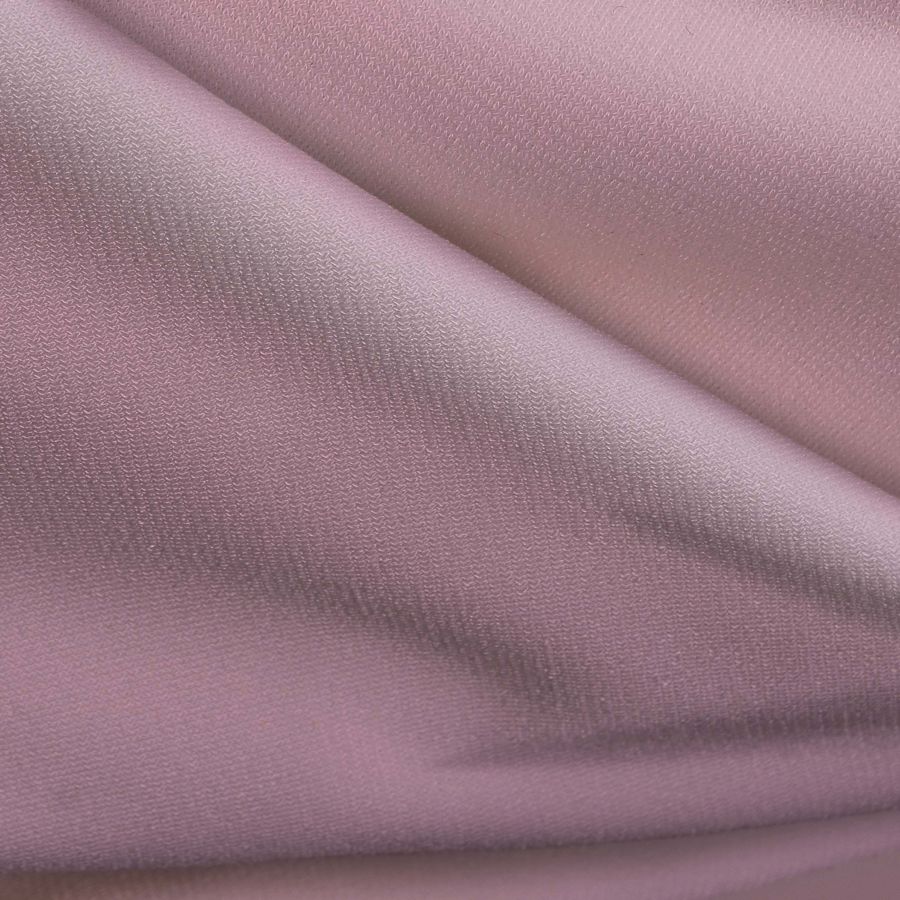 Las características generales de la tela base son su suavidad al tacto, su opacidad visual y su elasticidad, lo que la hace ideal para prendas ajustadas y ligeras. En cuanto al color liso impreso, su magenta predominante le da un tono vibrante y atractivo, que se adapta a tendencias tanto cálidas como frías y su opacidad permite que el color resalte más en la prenda.