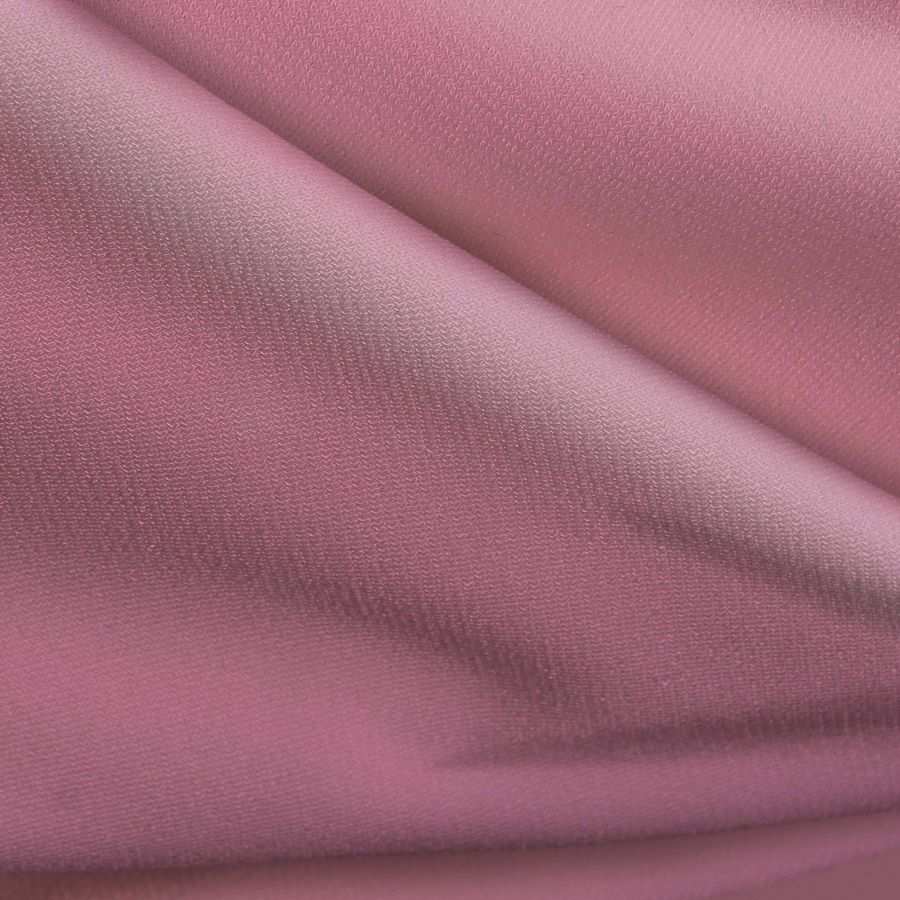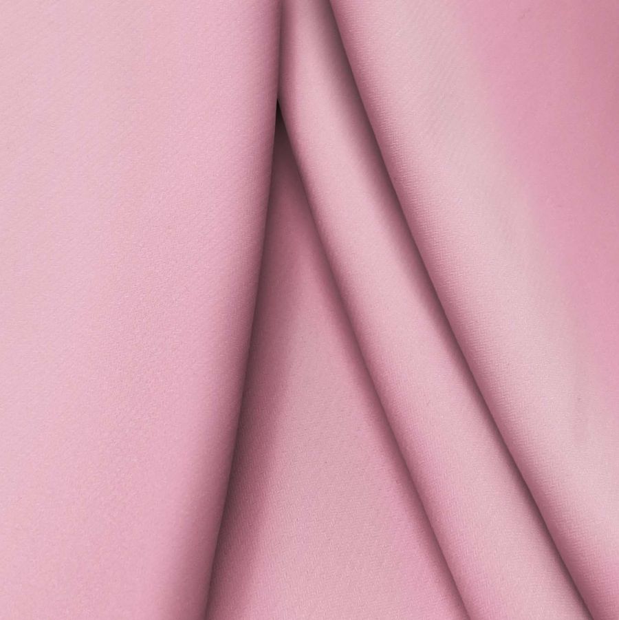 La tela base es el Punto Sintético con Spandex - Support, compuesta por un 95% de poliéster y un 5% de elastano, con un gramaje de 237 gr/m2 y un ancho de 152 cm. El color liso impreso es un tono rosa confite con un CMYK de 0 51 9 0, que se combina muy bien con otras tonalidades pastel. Es importante destacar que la tela está impresa a una sola cara por impresión digital textil, lo que significa que la otra cara de la tela no tiene impresión y que el color se ve más brillante en la cara impresa.