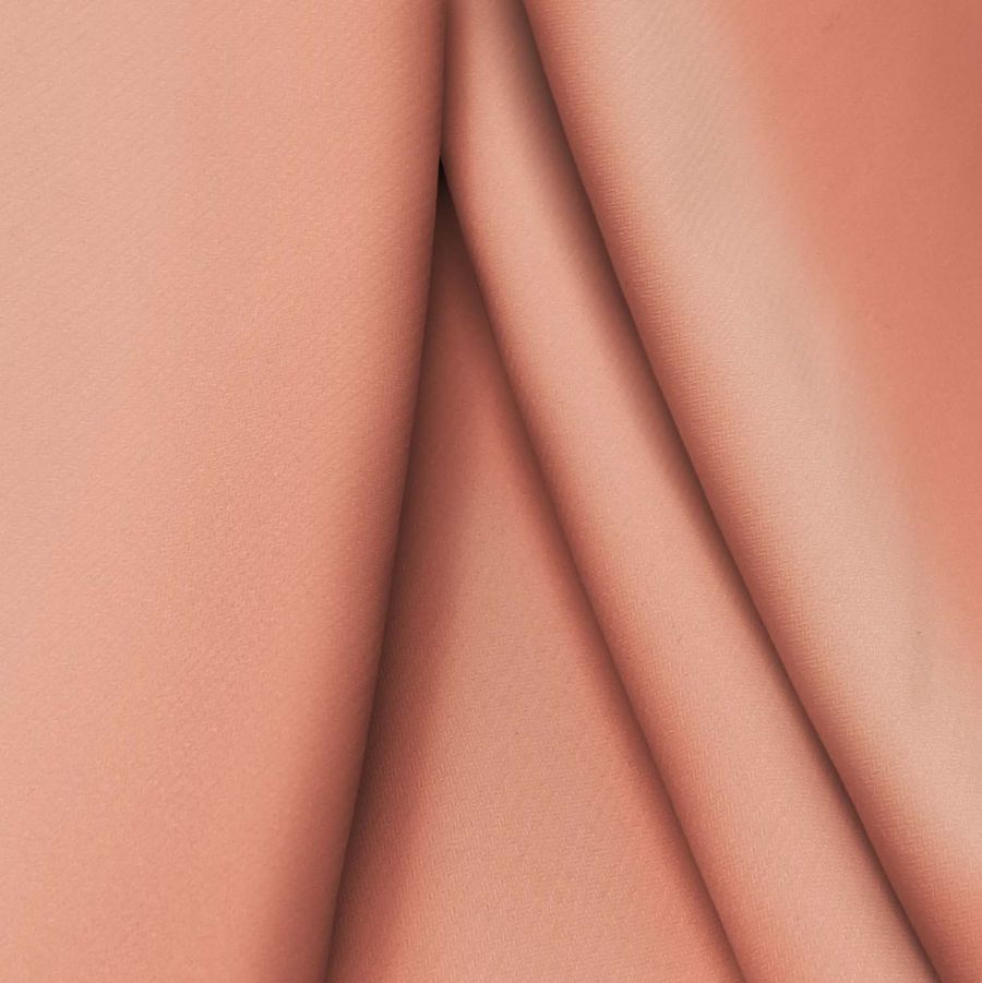 La tela base es Punto Sintético con Spandex - Support de 95% POLIÉSTER y 5% ELASTANO con un gramaje de 237 gr/m2 y ancho de 152 cm, en color rosa-salmón impreso con una tinta cian de 0, magenta de 58, yellow de 50 y black de 0, dando como resultado un CMYK de 0 58 50 0. Este color secundario simboliza amor y pasión, así como también representa la dulzura y la delicadeza de la flor de loto. Es un color fácil de combinar con otros tonos pastel como el azul cielo, el lavanda o el turquesa, creando un ambiente suave y tranquilo. El tejido está impreso con el color liso a una sola cara por impresión digital textil, lo que significa que no es un tejido tintado sino impreso en una sola cara.