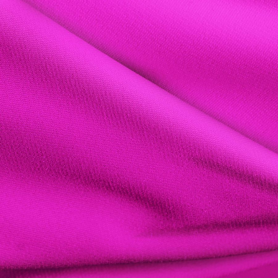 La tela base es Punto Sintético con Spandex - Support, con una composición de 95% poliéster y 5% elastano y un gramaje de 237 gr/m2. El color liso impreso es Rosa Shocking, con una base de tinta Cyan 22 y Magenta 83. Este color es vibrante y llamativo, perfecto para looks atrevidos y modernos. Combina a la perfección con colores neutros como blanco, negro y gris, así como con tonos pastel y similares del mismo rango cromático.