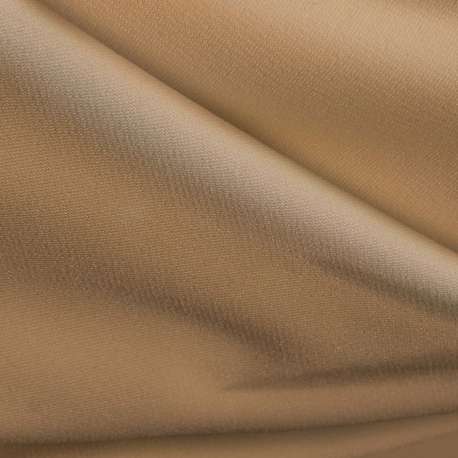 La tela base es el Punto Sintético con Spandex - Support. Su color liso es Marron Caramelo con un CMYK de 7 33 56 1. Este color es cálido y terroso, dando una sensación acogedora y de calma. Combina bien con colores tierra como ocre y beige, así como con tonos más vibrantes como naranja y verde bosque.