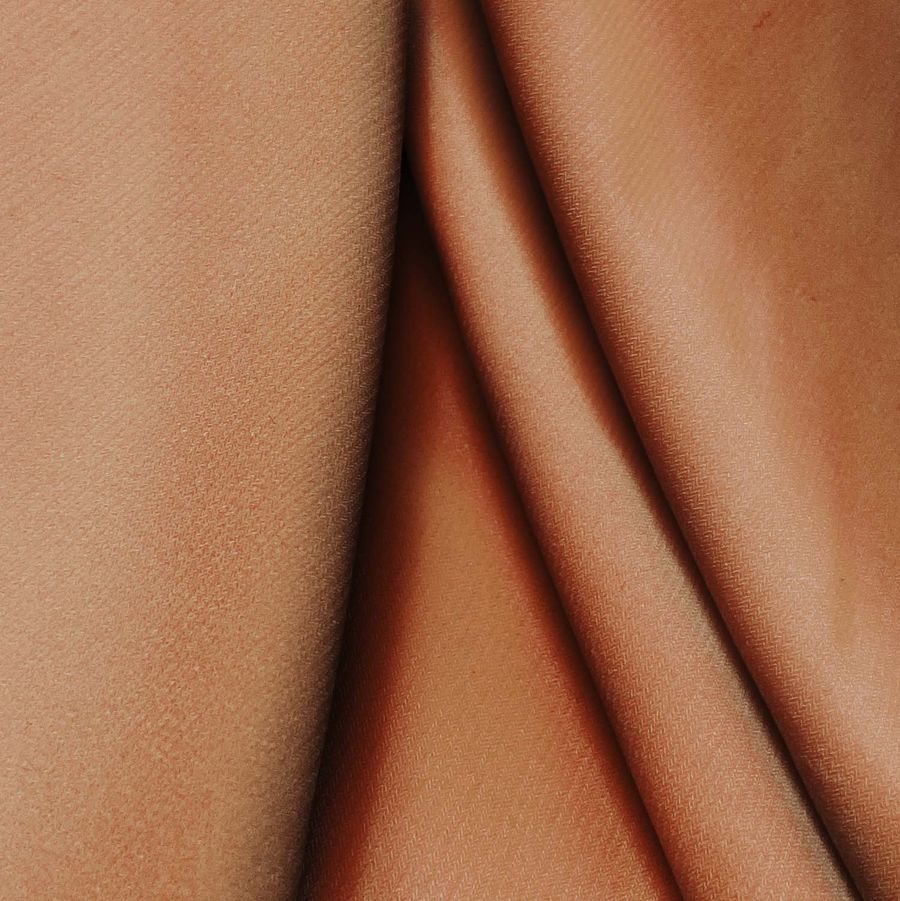 La tela base de este tejido es el Punto Sintético con Spandex - Support, compuesta por un 95% de poliéster y un 5% de elastano, de gramaje 237 gr/m2 y ancho de 152 cm. Su color liso impreso es un Marrón Coñac con un CMYK de 29 63 75 28. Este color se caracteriza por su elegancia y sofisticación, evocando imágenes cálidas y acogedoras, por lo que se adapta tanto a ambientes sobrios como a estilos más desenfadados.