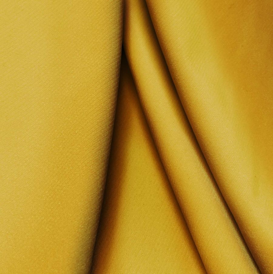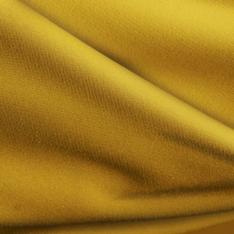 La tela base, Punto Sintético con Spandex - Support, tiene una composición de 95% poliéster y 5% elastano con un gramaje de 237 gr/m2 y un ancho de 152 cm. Su color liso impreso es Marron Dark Golden Rod con una tinta Cyan de 24, Magenta de 44, Yellow de 100 y Black de 14 (CMYK: 24 44 100 14). Es un color secundario que se percibe como un tono marrón dorado oscuro y es una excelente opción para combinarse con otros tonos terrosos como el verde oliva y el marrón.