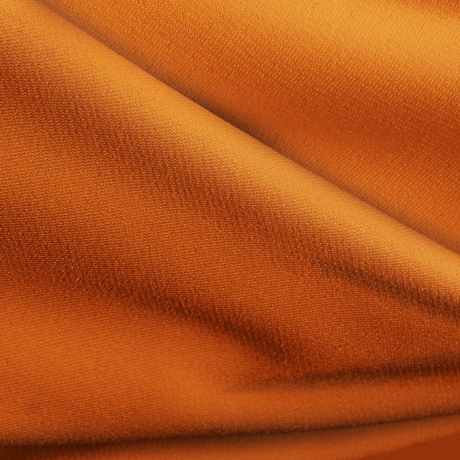 La tela base, Punto Sintético con Spandex - Support, es una tela de punto compuesta por un 95% de poliéster y un 5% de elastano, con un gramaje de 237 gr/m2 y un ancho de 152 cm. El color liso impreso en esta tela es un Marron Terra Pozzuoli, con una fórmula de CMYK de 13 74 100 4, que se caracteriza por tener una tonalidad cálida y terrosa. Este color secundario combina especialmente bien con tonos amarillentos y verdes pardos.