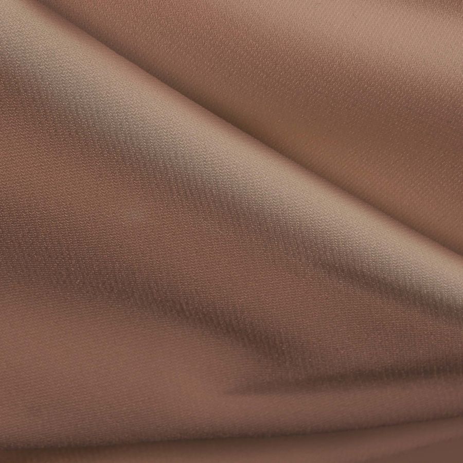 La tela base, el Punto Sintético con Spandex - Support, es una tela de punto compuesta por un 95% de poliéster y un 5% de elastano, con un gramaje de 237 gr/m2 y un ancho de 152 cm. El color liso impreso es un Marron Terracota con un CMYK de 20 47 52 9, que le otorga una apariencia opaca y suave al tacto. La combinación de estos colores secundarios simboliza la tierra y el barro, y se mezcla bien con tonos cálidos como el amarillo, el naranja y el verde.