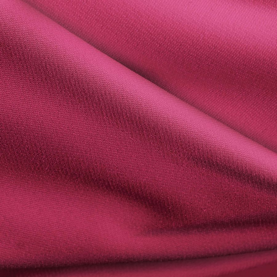 La tela base, Punto Sintético con Spandex - Support, es un tejido de punto compuesto por 95% poliéster y 5% elastano, con un gramaje de 237 gr/m2 y una anchura de 152 cm. El color liso impreso en esta tela es un Morado Amaranto Púrpura, cuyo CMYK es de 23 94 47 16. Este color secundario es una combinación de tonos rojos y azules que brinda una sensación de lujo y sofisticación, y combina perfectamente con tonos grises, negros y dorados.