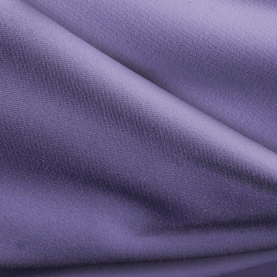 La tela base de este tejido es el Punto Sintético con Spandex - Support, compuesta por 95% poliéster y 5% elastano con un gramaje de 237 gr/m2 y una anchura de 152 cm. El color liso impreso en esta base es Morado-azul brezo, creado mediante la combinación de las tintas CMYK con un porcentaje de 66 de cian, 63 de magenta, 21 de amarillo y 4 de negro. Este color se caracteriza por su suavidad visual y táctil, así como por su elasticidad.