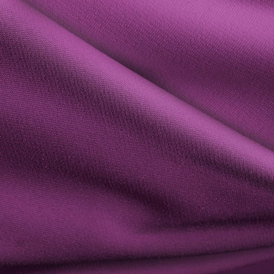 La tela base es el Punto Sintético con Spandex - Support, compuesta por un 95% de poliéster y un 5% de elastano, con un gramaje de 237 gr/m2 y un ancho de 152 cm. El color liso impreso es Morado Bizantino, cuyo CMYK es 62 95 26 17, compuesto por una alta cantidad de Magenta, seguida de una buena cantidad de Cyan y una baja presencia de Yellow y Black. Este color transmite un fuerte contraste y fuerza visual, simbolizando la creatividad, la sabiduría y la intuición. Combinaría particularmente con tonos Verde Oliva, Marrón Caoba, Rojo Amatista y Gris Azulado.
