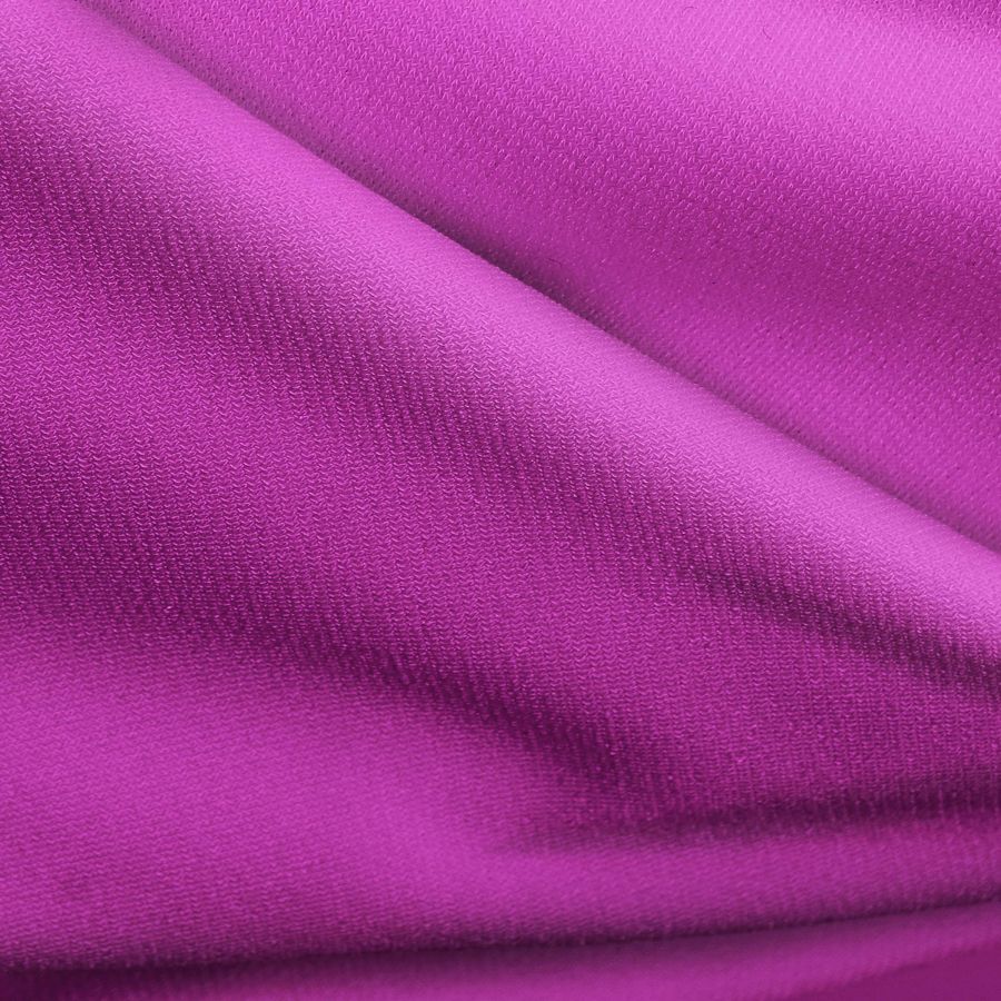 La tela base, Punto Sintético con Spandex - Support, de composición 95% poliéster y 5% elastano, tiene un gramaje de 237 gr/m2 y un ancho de 152 cm. El color liso impreso es de un morado bizantino, con un valor de tinta cian de 39 y un valor de tinta magenta de 85, y un valor de 0 para las tintas amarilla y negra. El CMYK de este color es de 39 85 0 0.