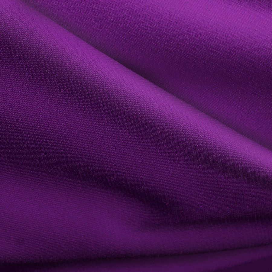La tela base, Punto Sintético con Spandex - Support, tiene un color liso impreso en tonalidades de morado y mora, reflejado en un CMYK de 82 100 29 24. Este color secundario es una mezcla equilibrada entre el fuerte y distintivo púrpura y el suave y delicado rosa, creando una sensación de armonía y equilibrio. El color combina perfectamente con tonalidades más claras como el rosa pastel, el blanco o el gris claro, así como con tonos más oscuros como el negro o el gris marengo.