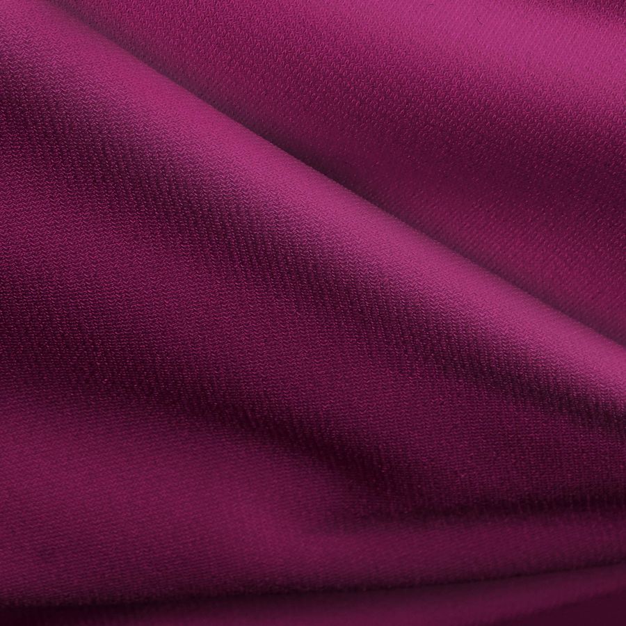 La tela base, Punto Sintético con Spandex - Support, tiene una composición de 95% poliéster y 5% elastano con un gramaje de 237 gr/m2 y un ancho de 152 cm. El color liso impreso es Morado, Purpura Imperial, que tiene un CMYK de 43 100 32 49. Este color simboliza la sofisticación, la creatividad y el lujo, es ideal para crear prendas de alta costura y se asocia comúnmente con la realeza y la nobleza.