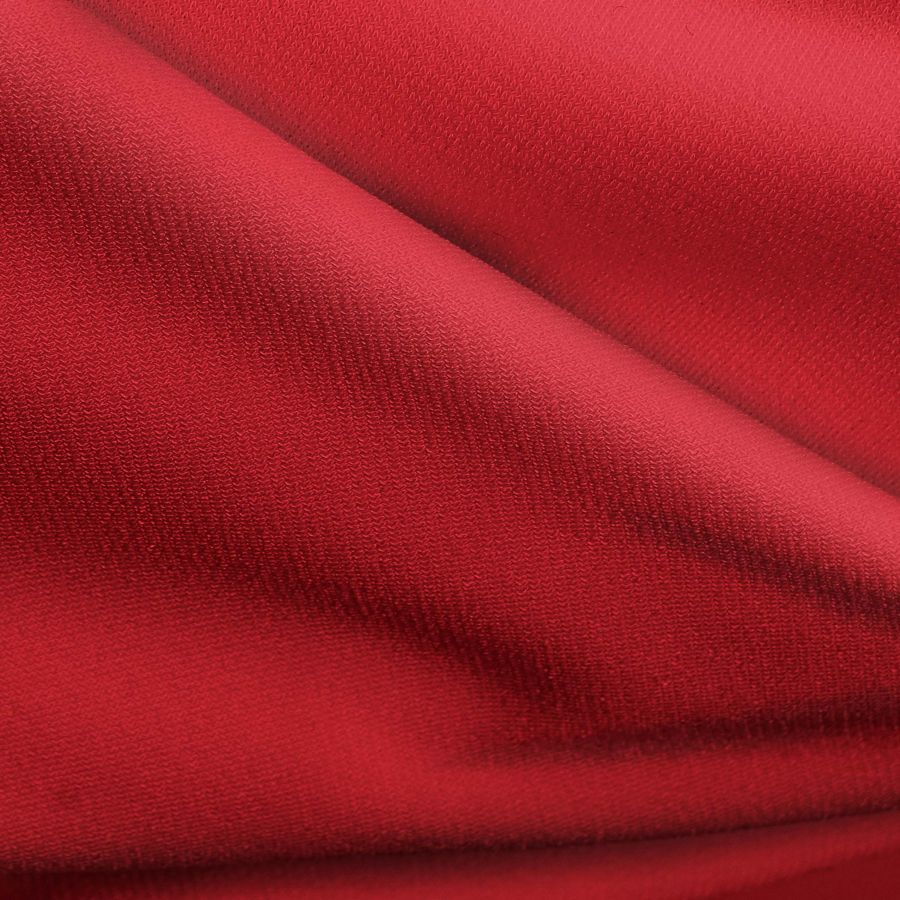 La tela base es el Punto Sintético con Spandex - Support, con una composición de 95% POLIÉSTER y 5% ELASTANO, cuenta con un gramaje de 237 gr/m2 y un ancho de 152cm. El color liso impreso es el Granero Rojo, con la siguiente combinación de tintas Cyan: 20, Magenta: 100, Yellow: 95 y Black: 13, dando como resultado un CMYK: 20 100 95 13. Este tono rojizo se asocia con la pasión y el romanticismo, y se combina perfectamente con tonalidades como el negro, blanco, marrón y beige.
