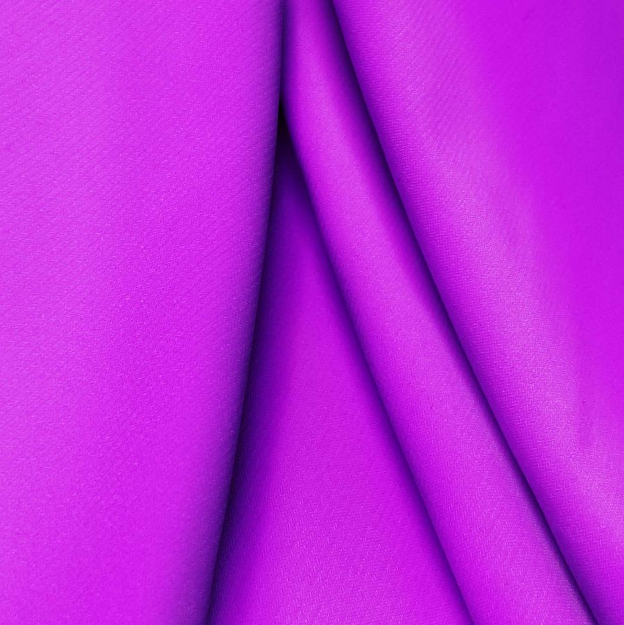 La tela base es el Punto Sintético con Spandex - Support, compuesta por un 95% de poliéster y un 5% de elastano, con un gramaje de 237 gr/m2 y un ancho de 152 cm. El color liso impreso es de un Morado Púrpura Eléctrico con un CMYK de 64 81 0 0. Este color se caracteriza por ser vivo y brillante, lo que lo hace perfecto para prendas de moda como tops, y combina especialmente bien con colores pastel o grises.