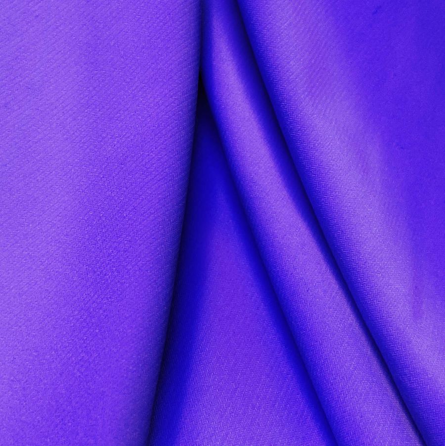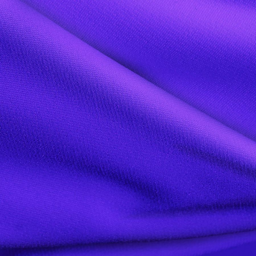 La tela base es un Punto Sintético con Spandex - Support de 237 gr/m2, compuesto por 95% de poliéster y 5% de elastano, que tiene una textura suave y elástica. El color liso impreso es un hermoso Morado Púrpura Han, cuyos valores de color en CMYK son 86 77 0 0, lo que indica una fuerte presencia de tinta Cyan y Magenta. Este color secundario simboliza la creatividad, la intuición y la espiritualidad, y se combina perfectamente con otros tonos cálidos como el amarillo y el naranja, así como con el verde y el azul, que pueden aportar una sensación de equilibrio y serenidad.
