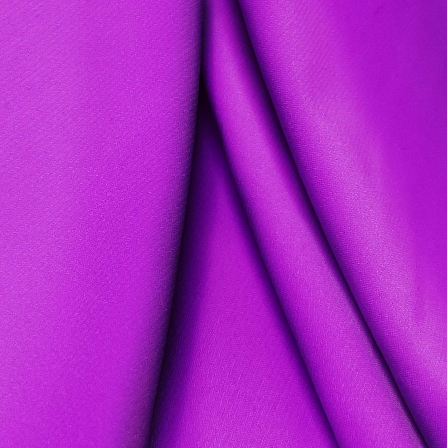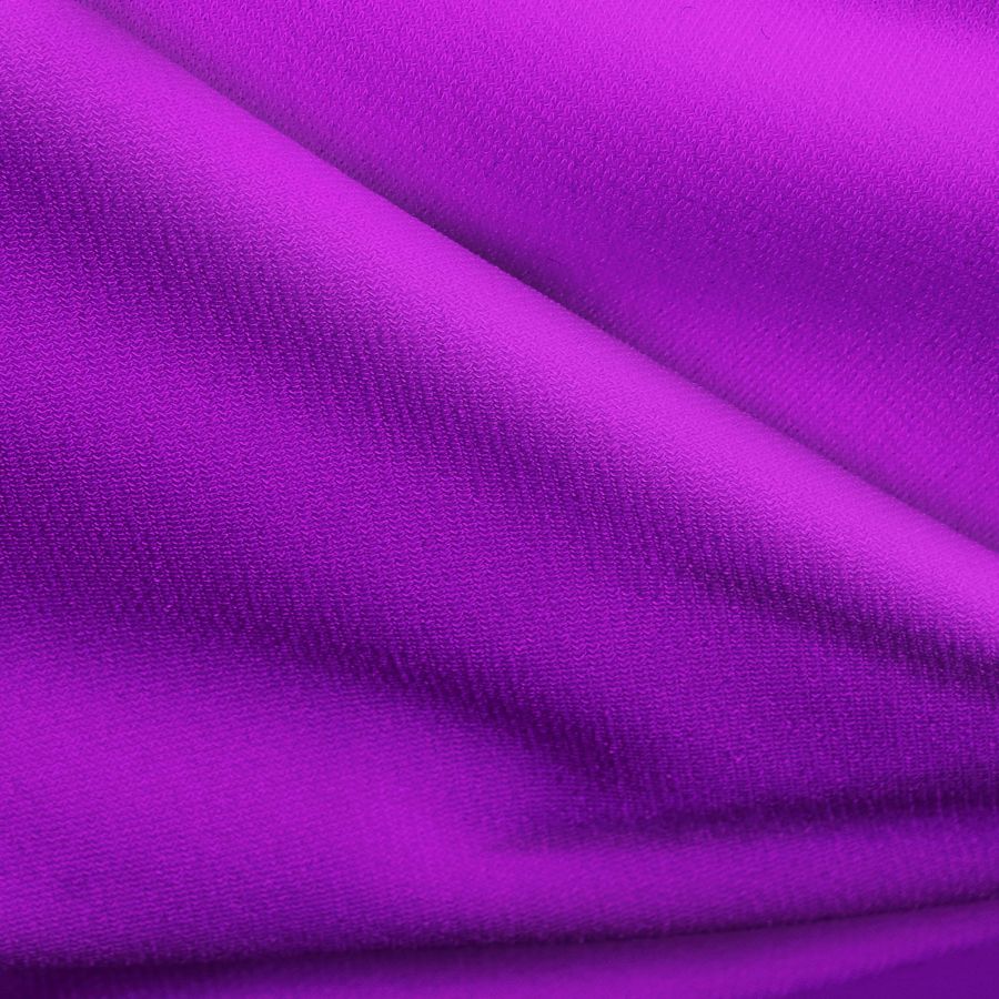 La tela base, Punto Sintético con Spandex - Support, tiene una composición de 95% poliéster y 5% elastano. Su gramaje es de 237 gr/m2 y su ancho es de 152cm. El color liso impreso es Morado Púrpura Munsell, obtenido mediante la tecnología de Sublimación (poliéster), con un CMYK de 64 86 0 0. Este color es un tono profundo y vibrante, que evoca la creatividad y la originalidad. Combina perfectamente con tonos claros como el blanco, el rosa pastel, y también con otros colores fuertes como el amarillo o el verde.