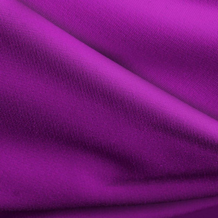 La tela base, Punto Sintético con Spandex - Support, es una tela de punto que está compuesta por un 95% de poliéster y un 5% de elastano, con un gramaje de 237 gr/m2 y un ancho de 152 cm. Su color liso impreso es un morado, purpura real, cuyo contenido de CMYK es 64 100 4 1.