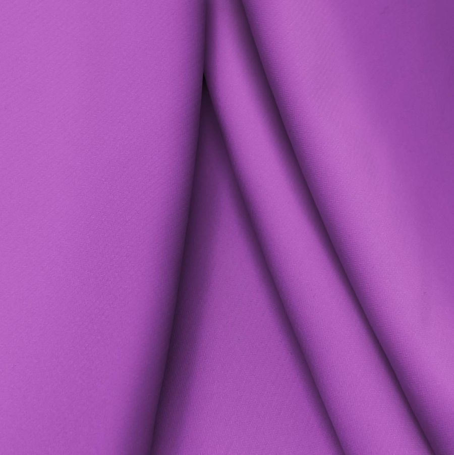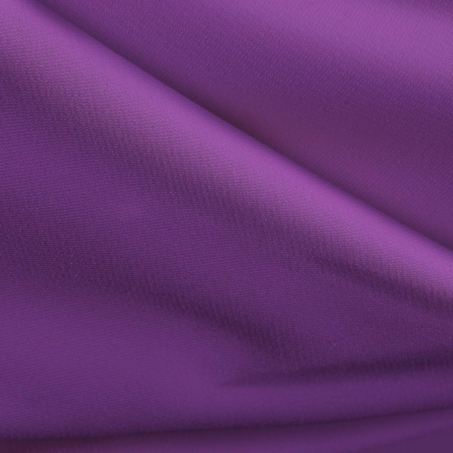 La tela base, Punto Sintético con Spandex - Support, tiene una composición de 95% poliéster y 5% elastano, con un gramaje de 237 gr/m2 y un ancho de 152 cm. El color liso impreso es de un morado purpúreo intenso, representado por un CMYK de 54 77 0 0. Este color es un símbolo de estabilidad, elegancia y sofisticación, y se combina perfectamente con tonos neutros como el blanco y el gris, así como con tonos cálidos como el naranja y el rosa.