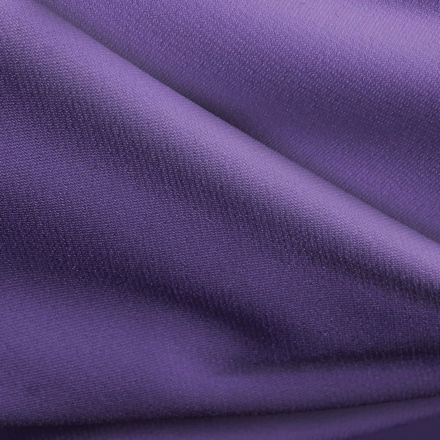 El Punto Sintético con Spandex - Support es una tela de punto compuesta mayormente por poliéster (95%) y elastano (5%). Con un gramaje de 237 gr/m2 y 152 cm de ancho, esta tela es suave al tacto, elástica y visualmente opaca. El color liso impreso en esta tela es el Morado, específicamente Uva de Cyber, con una combinación de tinta Cian (77), Magenta (81), Yellow (21) y Black (6) en su CMYK. Este color, además de ser vibrante, transmite misterio y elegancia. Se combina perfectamente con tonos negro y gris para lograr un look sofisticado, o con tonos rosados y violetas para una apariencia más alegre y fun. Es importante destacar que el tejido está impreso con el color liso a una sola cara por impresión digital textil, lo que significa que el color queda solamente en la superficie impresa de la tela.