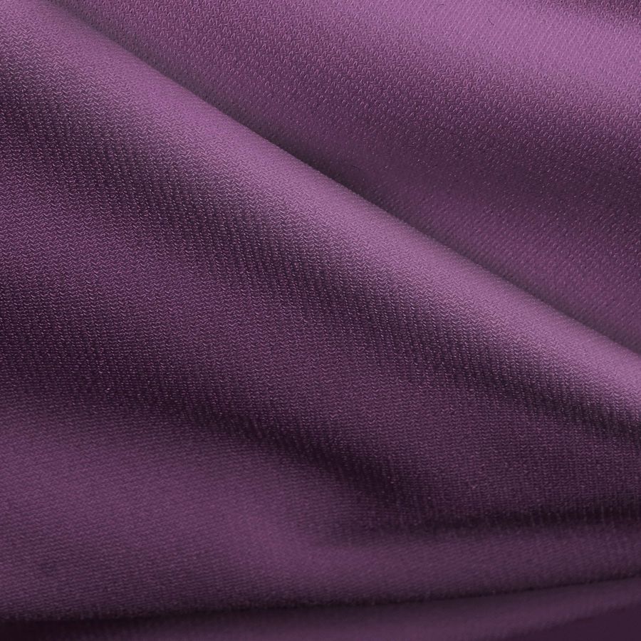 La tela base es el Punto Sintético con Spandex - Support, con una composición de 95% poliéster y 5% elastano, un gramaje de 237 gr/m2 y un ancho de 152 cm. El color liso impreso es un Morado/Violeta Japonés con un CMYK de 66 84 35 32. Este color secundario se encuentra en el rango de los tonos fríos y profundos, lo que lo hace ideal para crear ambientes serios y elegantes. Además, combina perfectamente con tonos grises, negros y blancos, así como con tonos verdes, azules y rosas pálidos. Es importante destacar que este tejido está impreso con el color liso a una sola cara por impresión digital textil, lo que significa que no es un tejido tintado sino impreso por una sola cara.