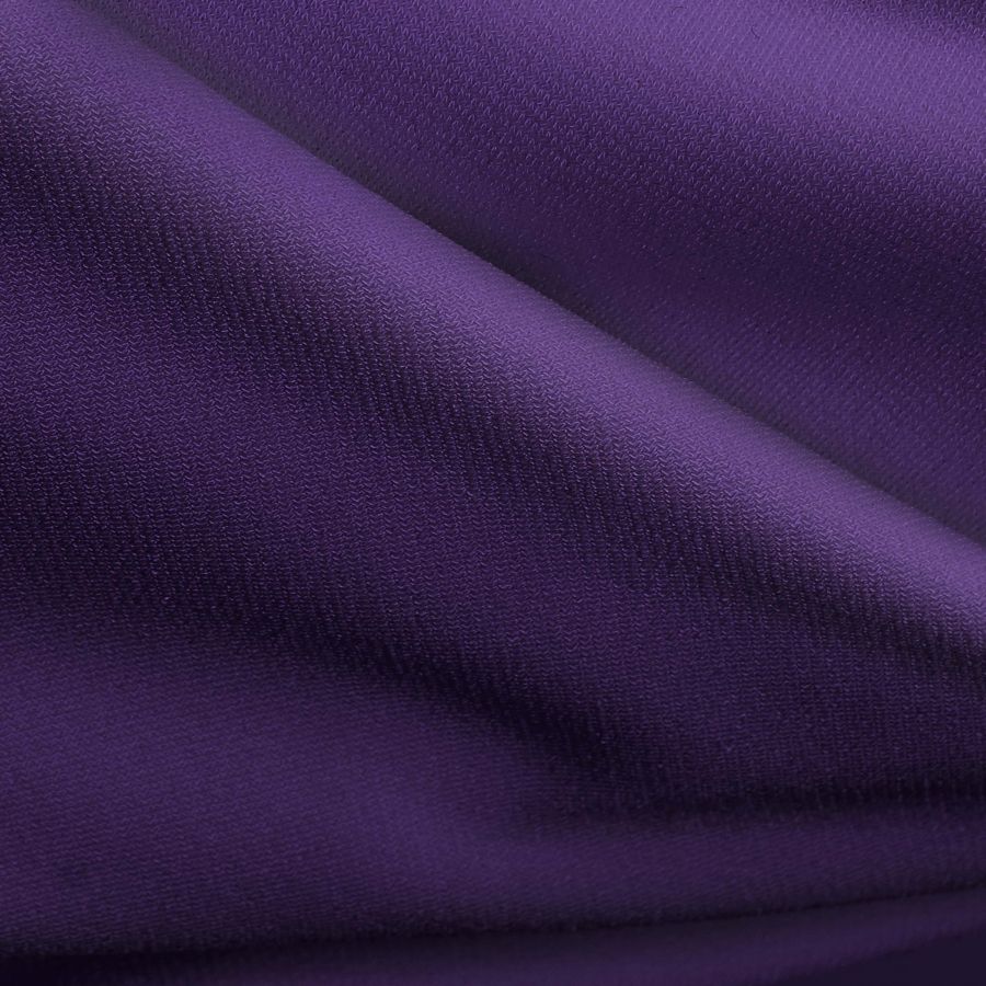 La tela base es el Punto Sintético con Spandex - Support, compuesta por un 95% de poliéster y un 5% de elastano. Su gramaje es de 237 gr/m2 y su ancho de 152 cm. El color liso impreso en esta tela es el Morado-Violeta Ruso, con un CMYK de 94 100 34 36. Este color liso se ve opaco y suave al tacto, gracias a las características de la tela base.