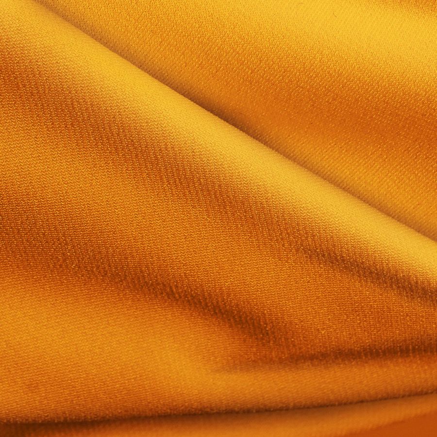 La tela base, Punto Sintético con Spandex - Support, tiene una composición de 95% poliéster y 5% elastano, con un gramaje de 237 gr/m2 y un ancho de 152 cm. Su color liso impreso en un naranja ladrillo se compone de 0% de tinta cian, 59% magenta, 94% amarillo y 0% de negro, con un CMYK de 0 59 94 0. Este color se asemeja a la tonalidad cálida de ladrillo y se combina bien con tonos neutros, como negro y marfil, así como colores análogos como amarillo y rojo.