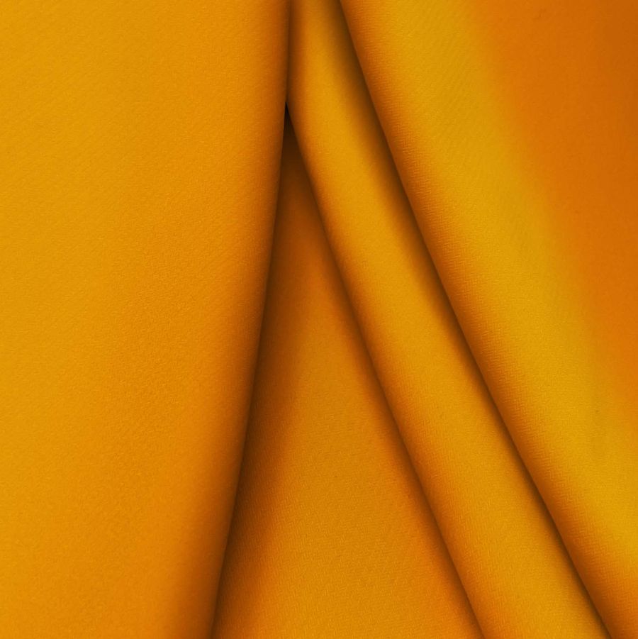 Se trata del Punto Sintético con Spandex - Support, una tela de punto compuesta principalmente de poliéster y elastano, con una densidad de 237 gr/m2 y un ancho de 152 cm. El color liso impreso es naranja Pantone, con un CMYK de 0 65 99 0, lo que indica que la tinta de color magenta tiene un alto porcentaje y la tinta amarilla también, y que no se utiliza tinta negra. Este color secundario transmite energía, creatividad y vitalidad, se asocia con el optimismo y el entusiasmo. El naranja combina especialmente bien con el blanco, marrón, negro y verde oliva. Es importante destacar que la tela está impresa con el color naranja a una sola cara por impresión digital textil, lo que significa que no está teñida sino impresa.