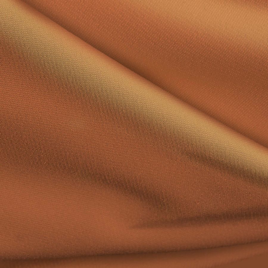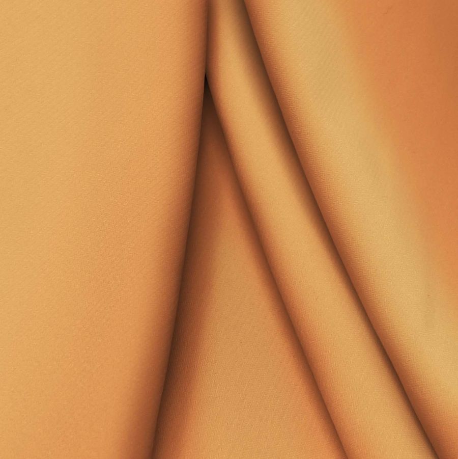 La tela base, Punto Sintético con Spandex - Support, es una tela de punto con una composición de 95% poliéster y 5% elastano, que tiene un gramaje de 237 gr/m2 y un ancho de 152 cm. El color liso impreso es un naranja llamativo e intenso, también conocido como "outrangeus orange", que se obtiene mediante la combinación de cian, magenta, amarillo y negro, con valores de 1, 57, 71 y 0, respectivamente. Este color secundario es vibrante, versátil y brillante, lo que lo hace ideal para la confección de prendas de moda, lencería, accesorios y ropa deportiva. Esto se debe a que combina perfectamente con tonos neutros como el negro, el blanco y el gris, así como con tonos más claros como el beige, el rosa y el amarillo pálido.
