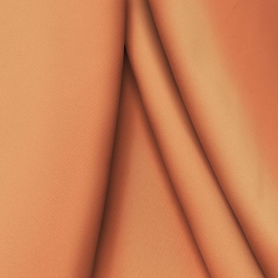 La tela base de esta pieza es el Punto Sintético con Spandex - Support, compuesta por un 95% de poliéster y un 5% de elastano, con un gramaje de 237 gr/m2 y un ancho de 152 cm. El color impreso es un hermoso Naranja Puesta de Sol, que se obtiene gracias a la tecnología de sublimación, lo que garantiza que el color es vibrante y duradero. Este color tiene una tinta Cyan de 1, una tinta Magenta de 63, una tinta Yellow de 67 y una tinta Black de 0, lo que se refleja en su CMYK de 1 63 67 0.