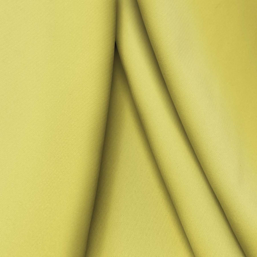 Esta tela base es el Punto Sintético con Spandex - Support, compuesta por un 95% de poliéster y un 5% de elastano. El color liso impreso es un ámbar con un CMYK de 15 12 72 1. Este color se caracteriza por ser cálido, brillante y luminoso, así como también asociado a la vitalidad y la energía. Combina especialmente bien con tonos verdes, rojos y azules oscuros. Se imprime a una sola cara por impresión digital textil, lo que consigue que el color no penetre en la fibra del tejido sino que se adhiera a la superficie del mismo.
