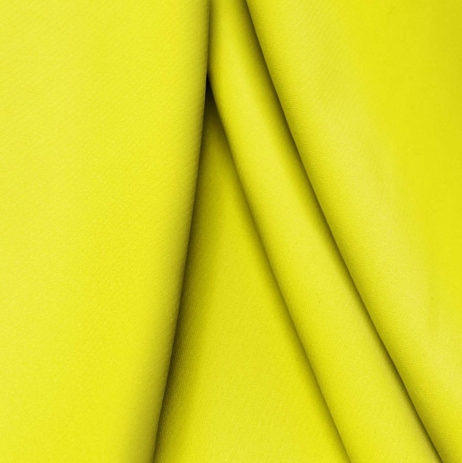 La tela base, Punto Sintético con Spandex - Support, tiene una composición del 95% de poliéster y un 5% de elastano, con un gramaje de 237 gr/m2 y una anchura de 152 cm. Su color liso impreso es un amarillo de cadmio, con las siguientes características del CMYK: cian 8, magenta 0, amarillo 88 y negro 0. Este color secundario se simboliza con la alegría, el optimismo y la creatividad, permitiendo crear un ambiente cálido y acogedor. El amarillo de cadmio se combina perfectamente con el blanco, el negro y los colores tierra. La tela está impresa con el color liso a una sola cara por impresión digital textil, lo que la hace ideal para diversas aplicaciones y usos.