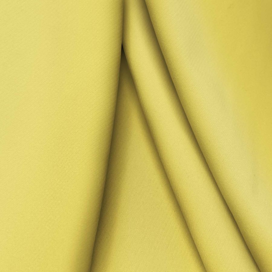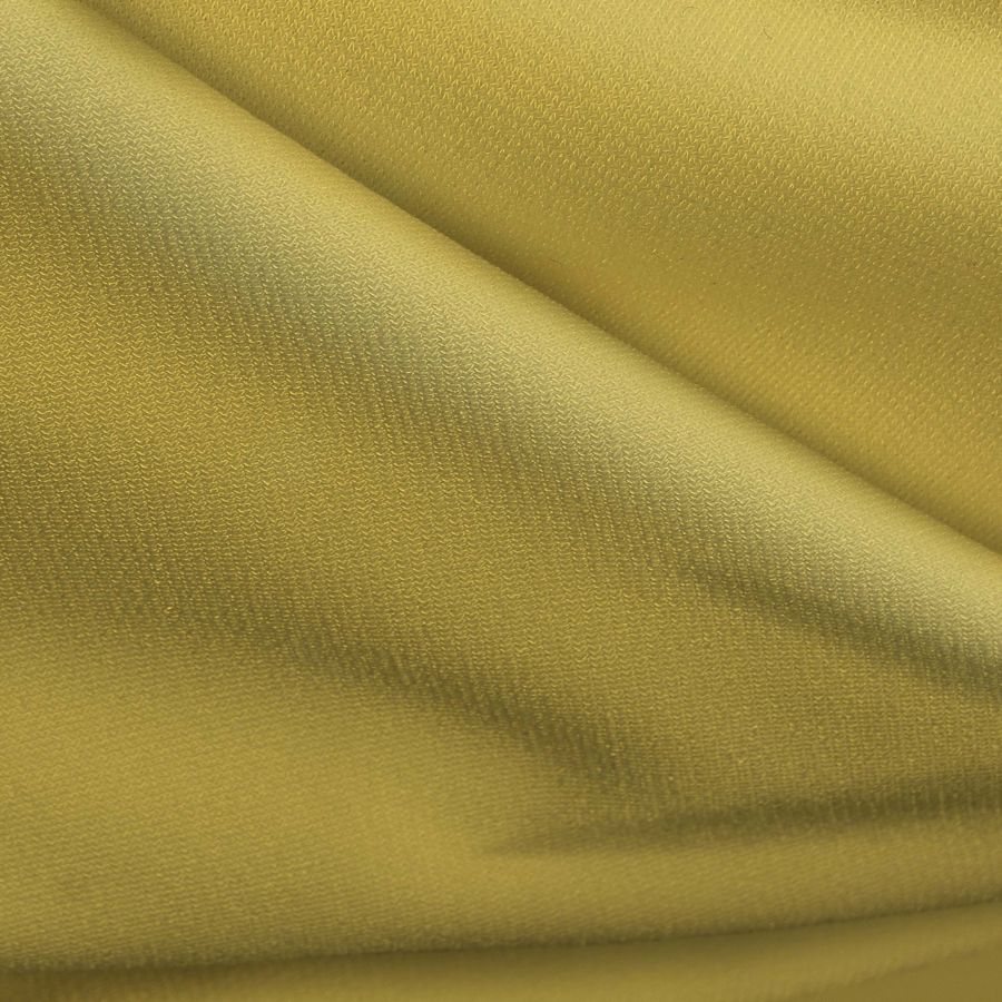 La tela base es el Punto Sintético con Spandex - Support, compuesto por un 95% de poliéster y un 5% de elastano, con un gramaje de 237 gr/m2 y un ancho de 152 cm. Su color liso impreso es de un Amarillo de China, con un CMYK de 4 12 72 0, donde predominan los tonos amarillos y anaranjados. Este color transmite energía, vitalidad y optimismo, y combina especialmente bien con tonos azules y verdes.