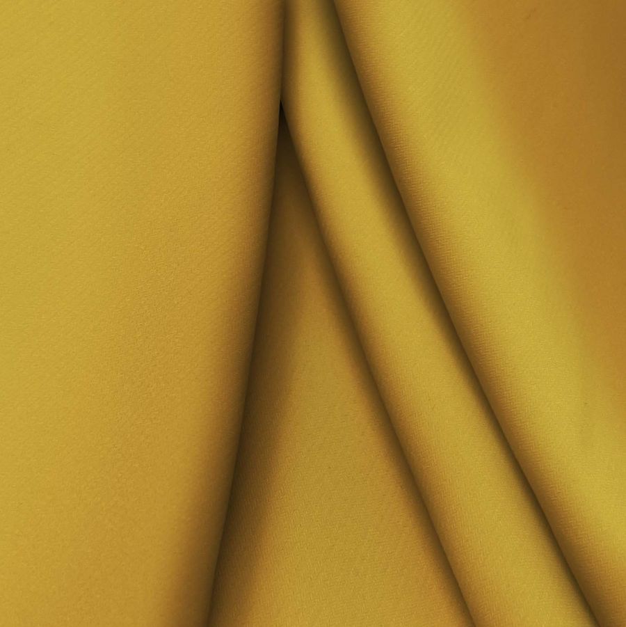 La tela base tiene características suaves y elásticas al tacto, lo que la hace muy cómoda de usar. Además, es opaca y tiene una buena caída, lo que la hace ideal para prendas que requieren un buen ajuste. Por otro lado, el color amarillo nicotina tiene una gran opacidad, que lo hace ideal para prendas donde se requiere un color uniforme y brillante.