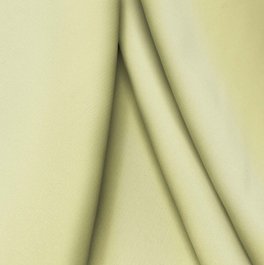 La tela base es el Punto Sintético con Spandex - Support, compuesta de un 95% de poliéster y un 5% de elastano, con un gramaje de 237 gr/m2 y un ancho de 152 cm. El color liso impreso es de un amarillo pera con una mezcla de tinta cian de 11, tinta magenta de 1, tinta amarilla de 50 y sin tinta negra (CMYK 11 1 50 0). Este color secundario evoca la frescura de una fruta recién cortada, aportando un toque cálido y suave. Combina perfectamente con tonalidades verdes, naranjas y marrones, creando un contraste equilibrado.