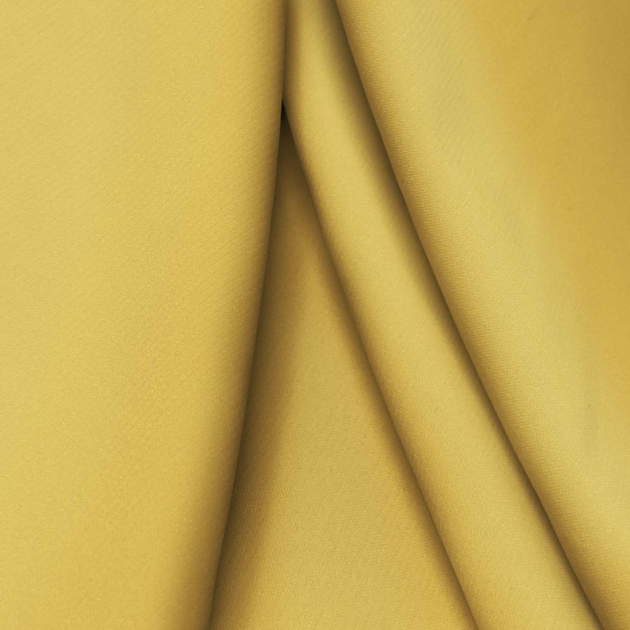 La tela base es Punto Sintético con Spandex - Support, con una composición de 95% poliéster y 5% elastano y un gramaje de 237 gr/m2. El color liso impreso es Amarillo Yema, con un CMYK de 12 32 75 2. Este amarillo yema simboliza la energía y la felicidad, representando el sol y la luz del día. Además, es un color cálido que combina perfectamente con tonos neutros y tierra. La tela está impresa con el color liso a una sola cara por impresión digital textil, lo que significa que el color solo está impreso en una cara del tejido y no es un tejido tintado.