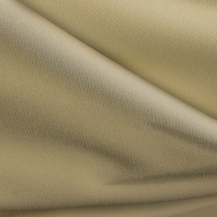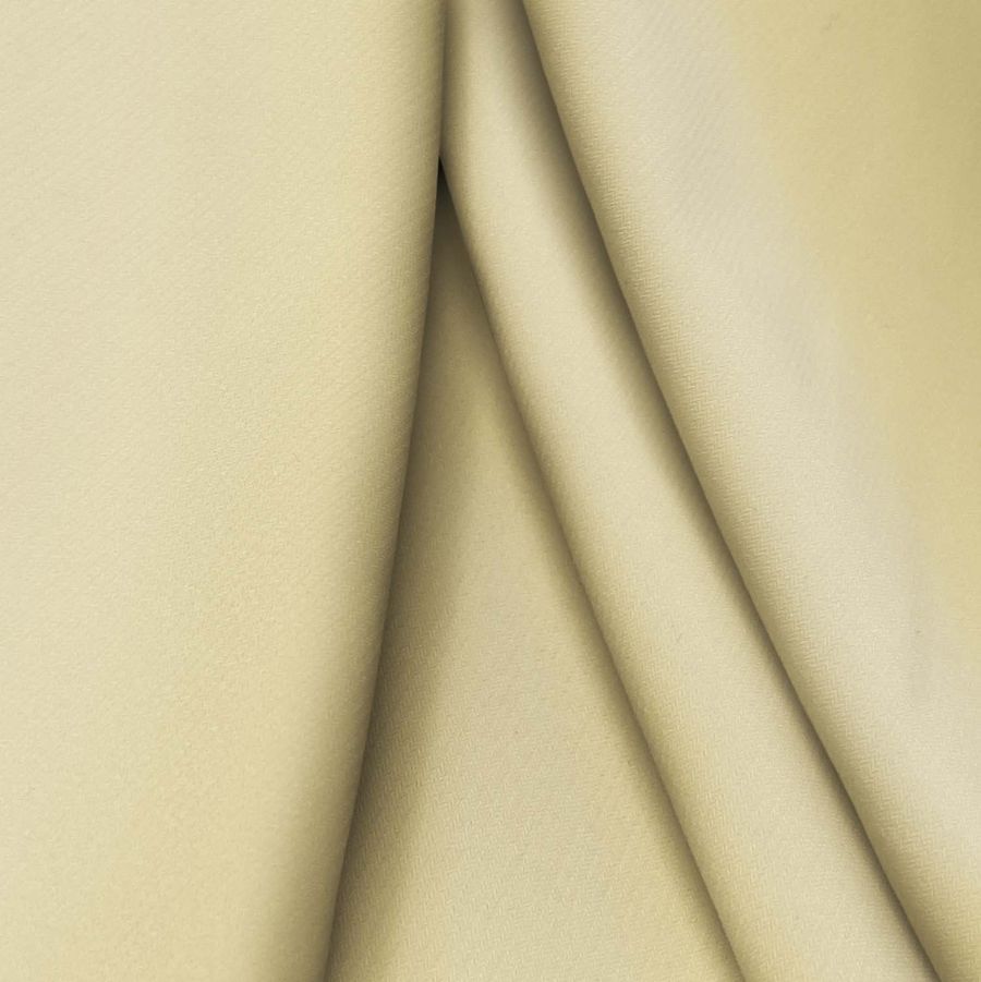 La tela base, Punto Sintético con Spandex - Support, tiene un color liso impreso en tonos amarillo y beige, con un CMYK de 9 14 47 0. El color evoca una sensación de calidez y suavidad, y combina muy bien con tonos tierra y neutros.