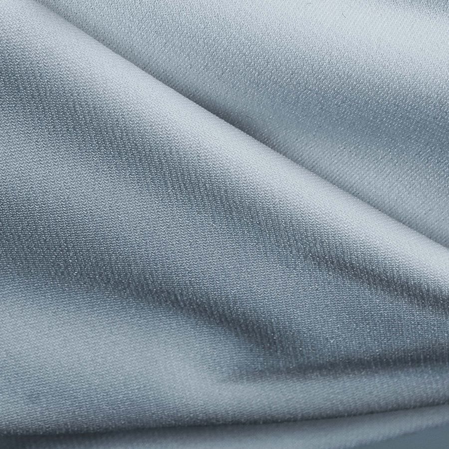La tela base es el Punto Sintético con Spandex - Support, compuesta por 95% POLIÉSTER y 5% ELASTANO. El color liso impreso en esta tela es una combinación de gris y azul pálido (AliceBlue), indicada por un CMYK de 47 28 24 5. Este color secundario es suave y discreto, inspirador de calma e introspección. Combina especialmente bien con tonos más oscuros de gris y azul, así como con tonos verdosos, como el turquesa. Es importante destacar que la tela está impresa con el color liso por una sola cara por impresión digital textil.